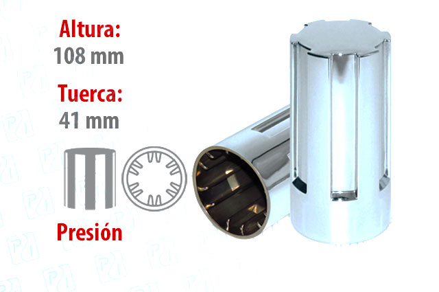 - Tipo presión alta para NPR. - Terminación acanalada. - En material ABS cromado. - Accesorio cromado de lujo. Información adicional Altura: 108 mm Tuerca: 41 mm Terminación: Plana lisa.